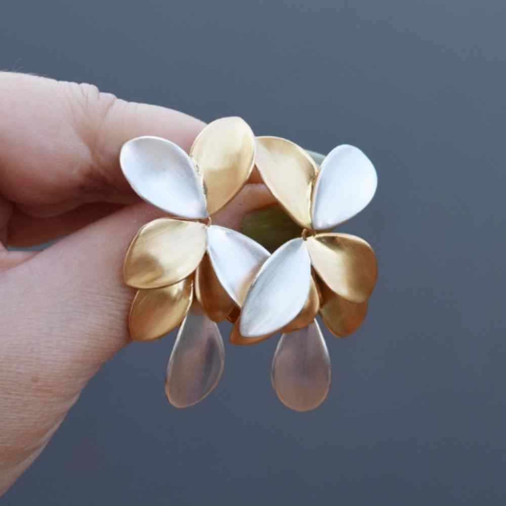O brinco Petalas em banho de ouro 18k e ródio é uma joia que combina a elegância de dois tons metálicos, criando um visual único e moderno. Esta peça incrível apresenta: