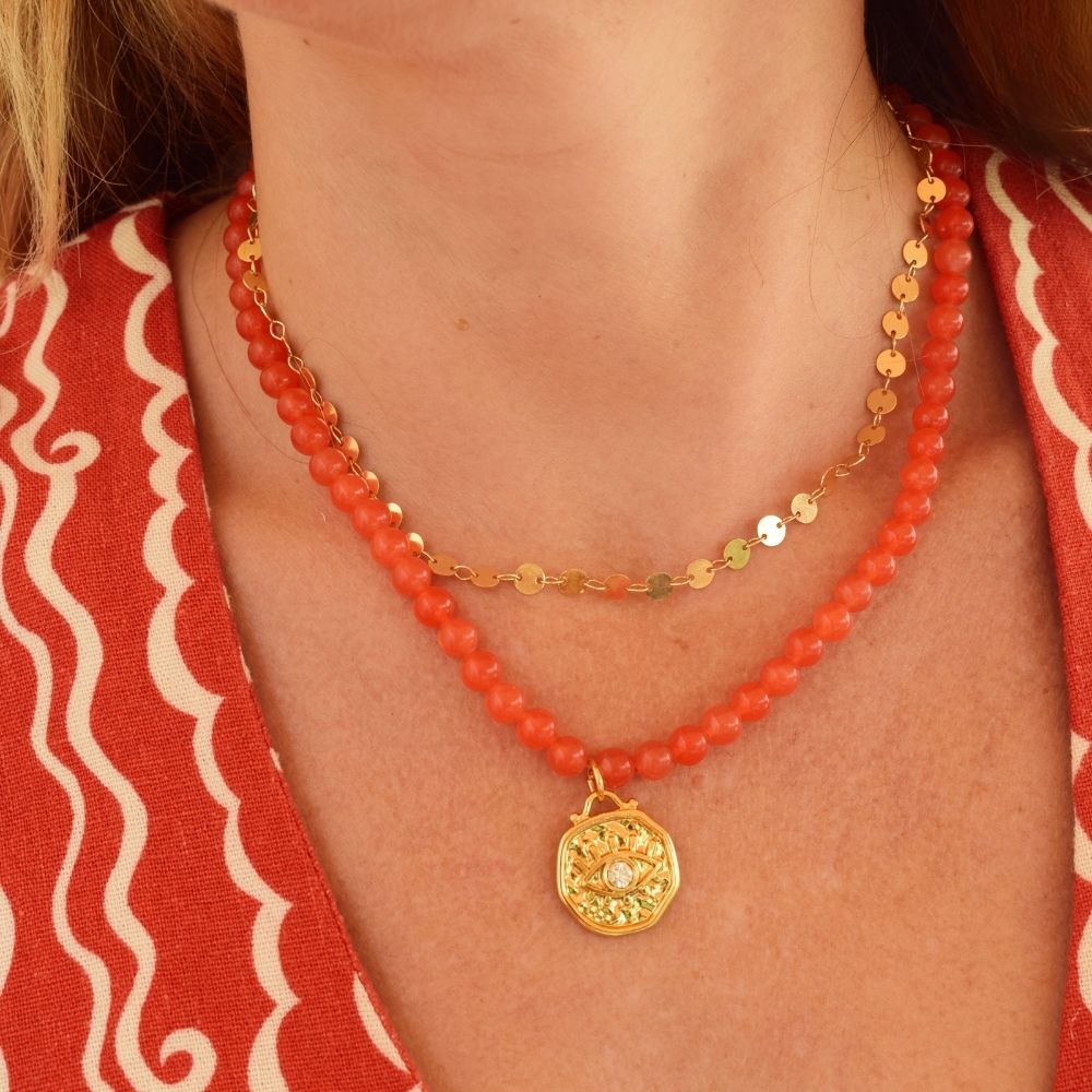 Vibrante, simbólico e cheio de personalidade, o colar Aperol é uma celebração da energia do verão com significado e sofisticação. As pedras naturais de ágata laranja, conhecidas por sua beleza intensa e vibração positiva, trazem vitalidade, alegria e equilíbrio emocional à peça, tornando cada colar único.